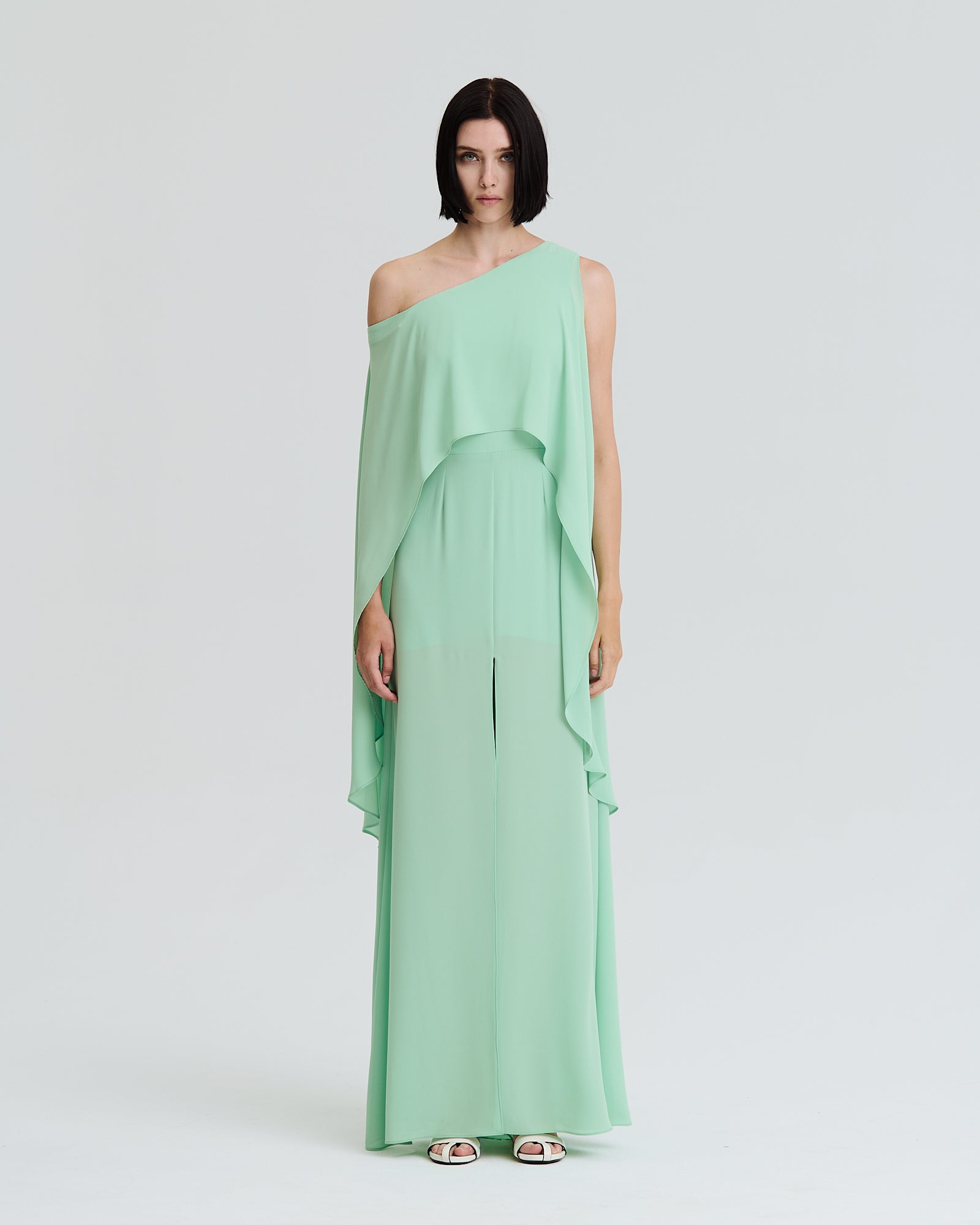 Elegant off-shoulder design meets effortless sophistication with this stunning cape dress in soft mint. The draped cape sleeves create a graceful silhouette while the off-shoulder neckline adds a touch of modern glamour. Perfect for special occasions, evening events, or when you want to make a refined statement. The mint hue offers a fresh, versatile palette that complements all skin tones. Crafted for comfort and style, this piece transitions beautifully from day to night.